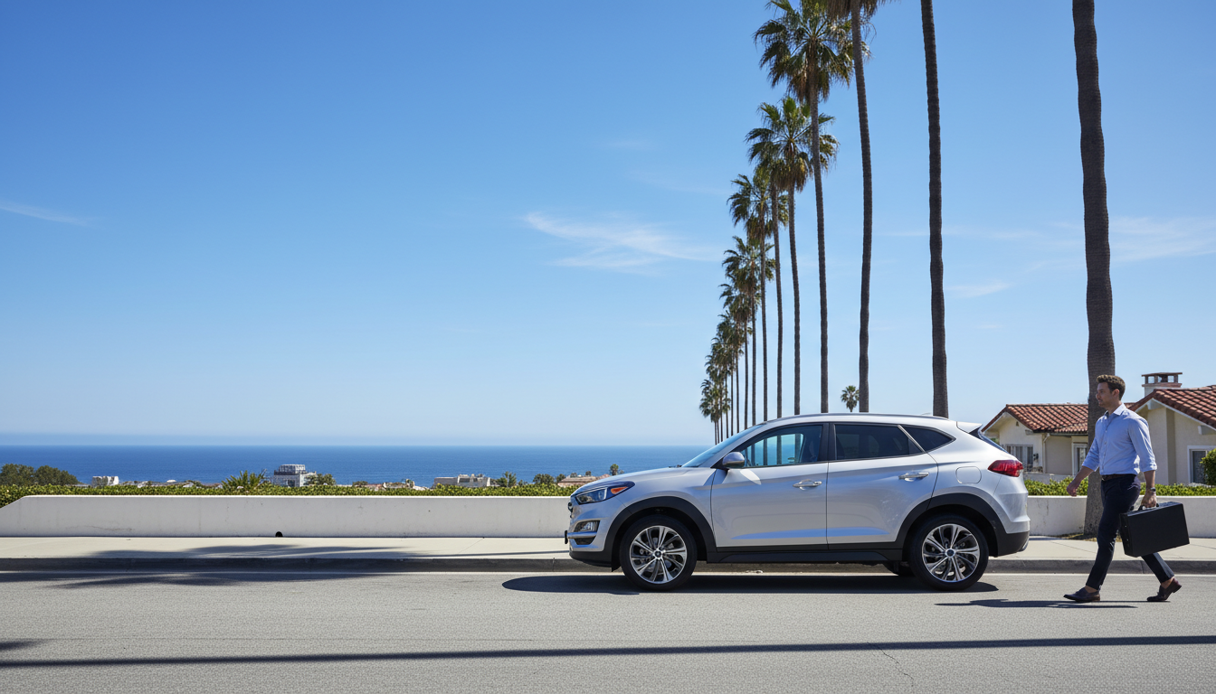 In California, you'll need a valid driver's license, proof of income (paystubs or bank statements), proof of residence (utility bill or lease agreement), and proof of auto insurance. California law requires full coverage insurance for financed vehicles. Our San Diego dealers can help you find affordable insurance options if needed. The minimum age is 18 in California.